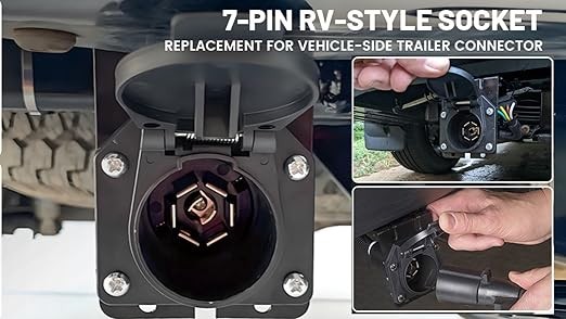 7 Way RV Trailer Light Connector Socket 7 Pin Wire Electrical Trailer Adapter