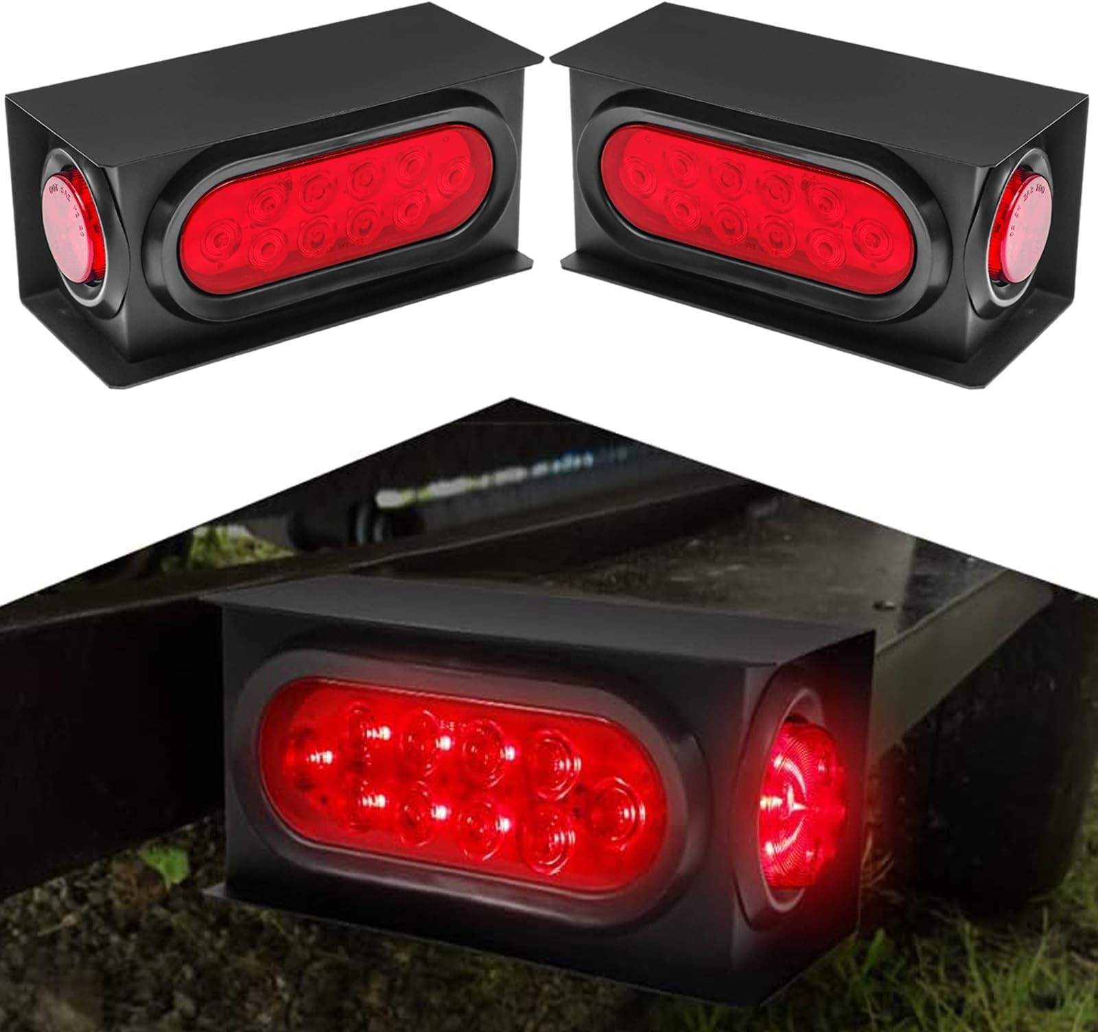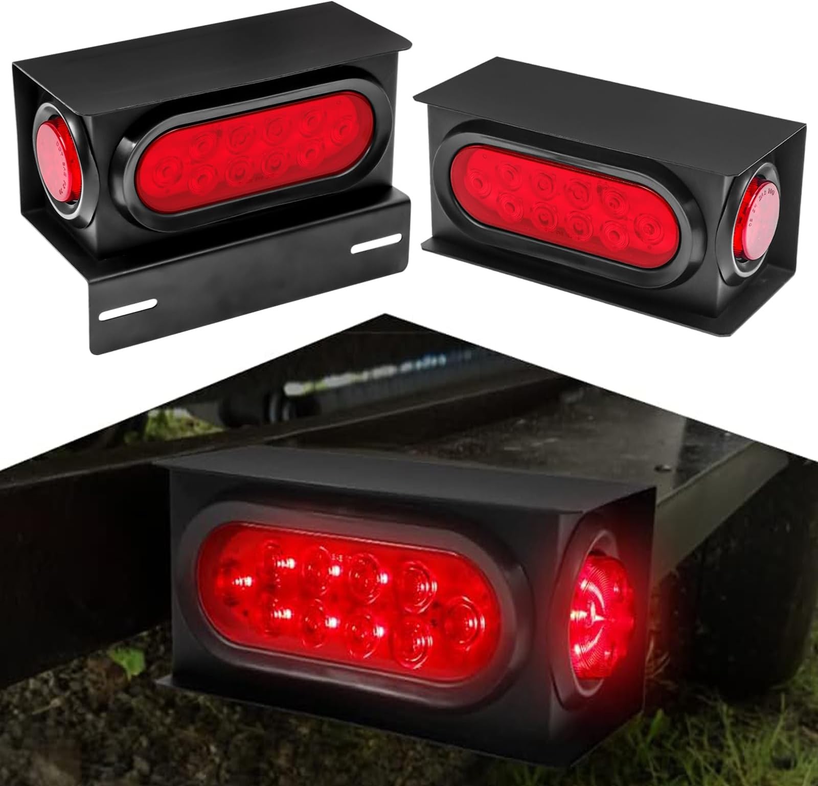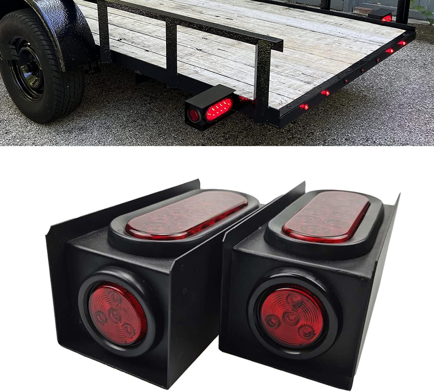 2PCS Steel Trailer Light Boxes Housing Kit w/6Inch Oval Red LED Tail Lights 2 Inch Round Side Marker w/Grommet Plugs Wire connectors