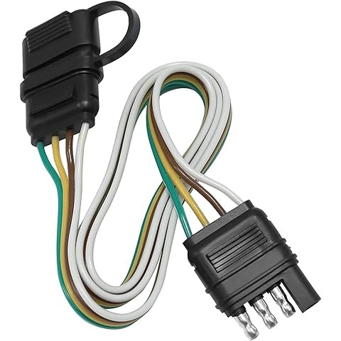 4 Way Flat Female End Socket: - This 48 inch vehicle side 4-pin trailer pigtail connector female end socket harness is specifically designed for the car side of the connection; Compatible with all 4 wire vehicle side trailer connector, perfect for replacing your old damaged car side 4 pin flat socket