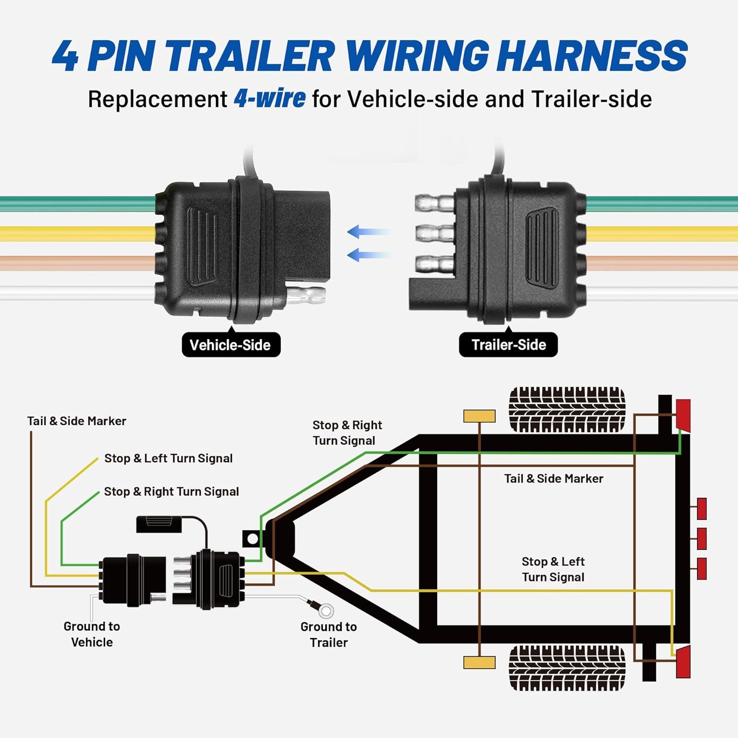 Vehicle-side and Trailer Side 4-Wire: - 4-flat wiring plugs and sockets come with both side easily replace your old damaged car side 4 prong trailer socket and trailer side trailer plug wire